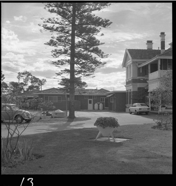 Description: This is a digitised copy of a negative and is part of the group of six images titled ‘Nulsen Haven, Redcliffe and the new dormitory funded by Wings Away Inc, 26 May 1975 [picture]’ held at the State Library of Western Australia. The image shows the driveway and outside of Nulsen Haven.
