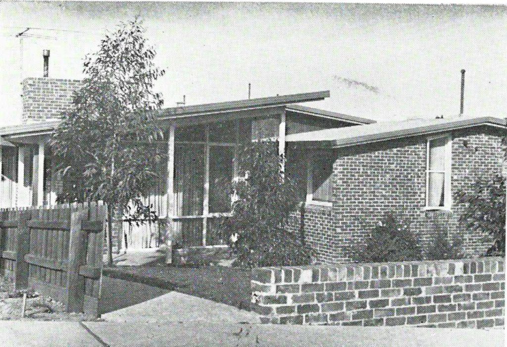 Description: This is a photograph of a Family Group Home run by Kildonan at 36 Moselle Street, Box Hill. It was published by the Presbyterian Social Services Department in a pamphlet titled The Work of Presbyterian Social Services. It shows the front of a single-storey brick house with an asymetrical roof, large windows, and brick front fence.