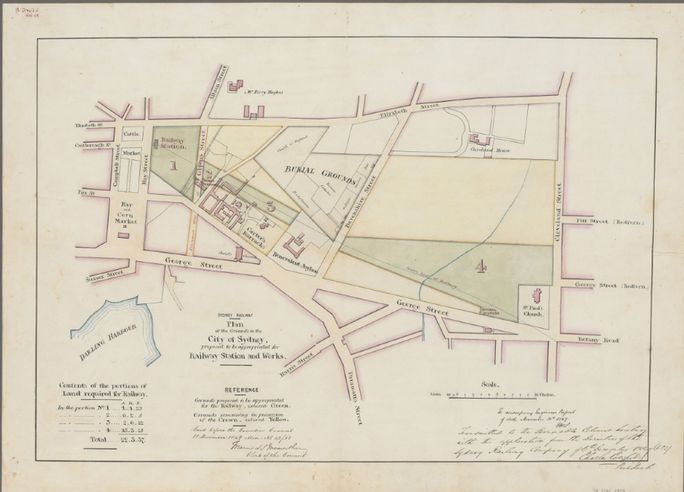 Description: This section of the Plan of Syndey with Pyrmont shows the location of Carters’ Barracks.