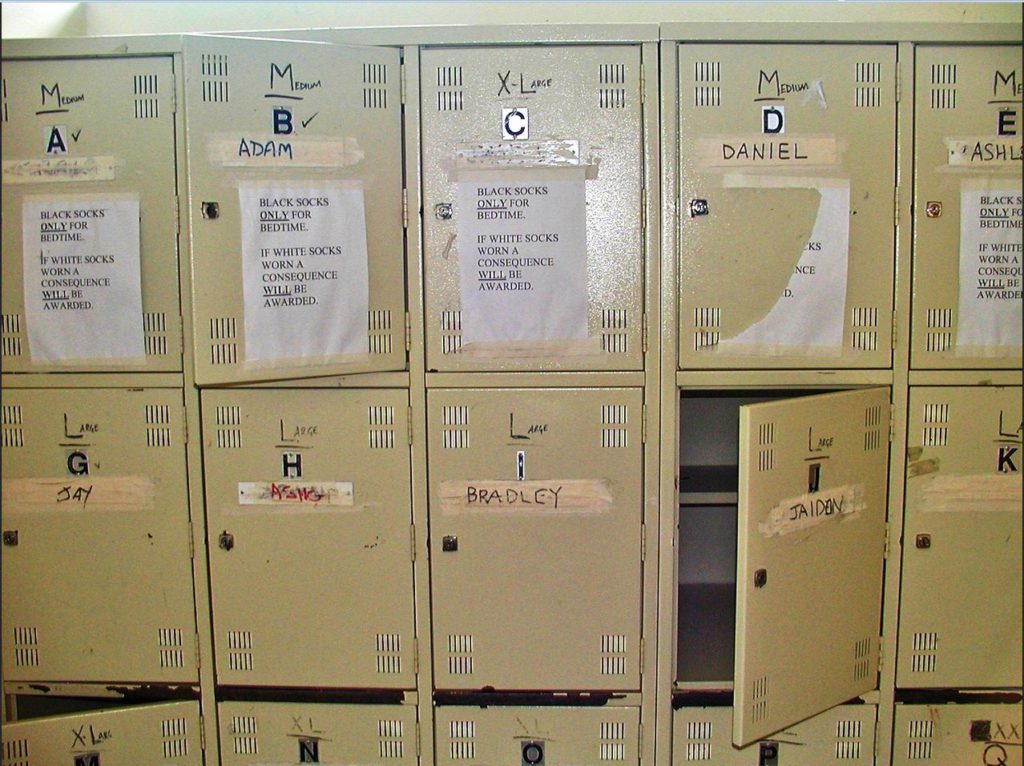 The signs, and the names of residents, remained on the lockers after Magill Training Centre was closed in 2012.
