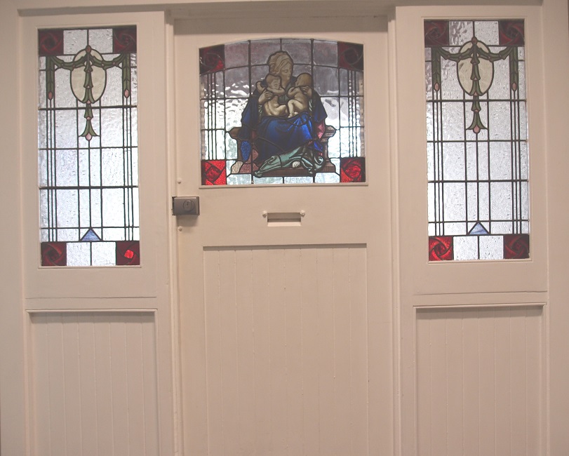 Description: ‘Reception Home front door’ is a digital image of the stained glass panels that were saved during the restoration of the government ‘reception Home’ on the corner of Walcott and Lord Streets, Mt Lawley. The building in 2013 was the Youth Justice Services Centre.