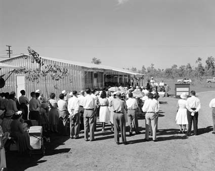Description: This image is thought to show guests at the opening ceremony for the new cottages at Retta Dixon Home.
