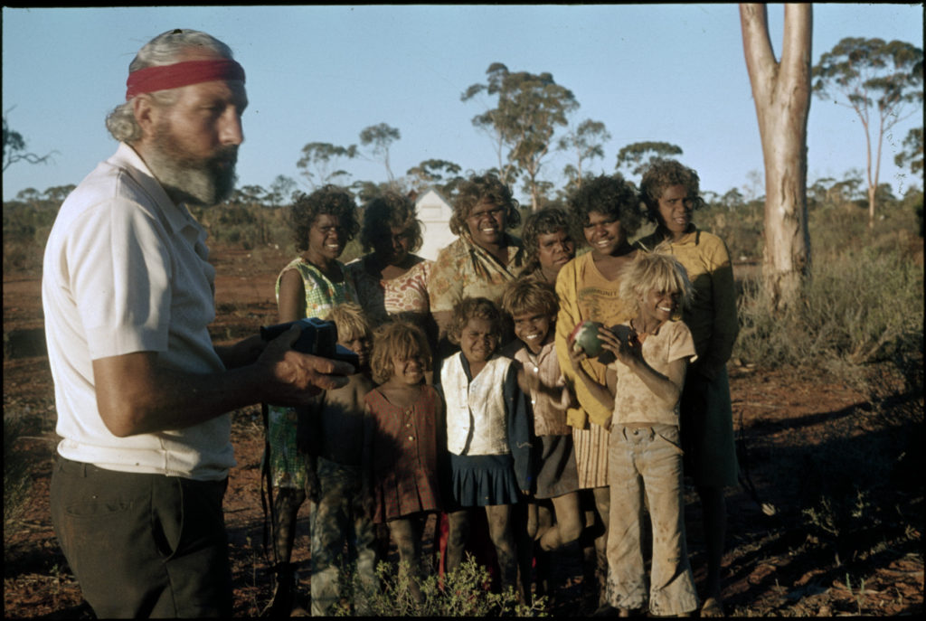 Robert McKeich and school children at Cundeelee, 1978