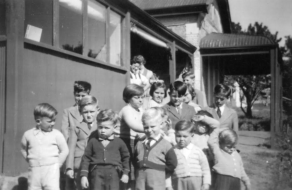 Description: The caption provided states: 1949-1950, ROBERTS HOME, at Magill Methodist Children’s Home, on corner of Adelaide Street and Facing Penfold Road at MAGILL next to the Primary School, built and opened in 1921, Damaged in the 1954 Earthquake, at 3.40am on 1st March 1954, [ 5.6mag ] later demolished and new home built in 1964, called Roberts Cottage, “Toddlers Home”.