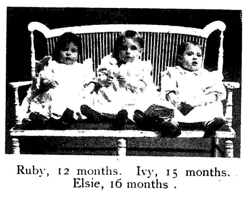 Description: This image appeared in the Methodist Spectator newspaper on 23 December 1910. In the monthly notes about Livingstone Home (an early name for Methodist Homes for Children), Ada Egglestone wrote ‘Three of our babies appear, as a deputation, this month, to convey Xmas greetings to all the friends and helpers of Livingstone Home’.