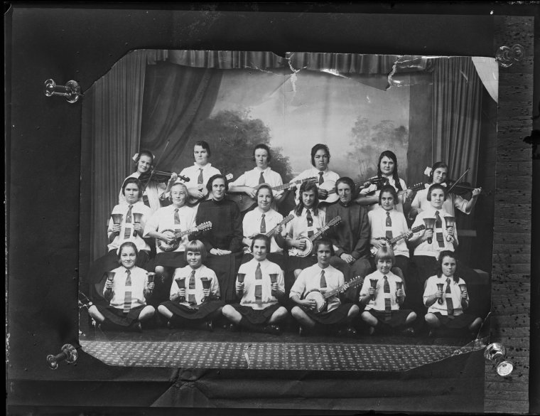 Description: This is a digitised copy of a glass negative and is part of the group of five images titled ‘Salvation Army in Western Australia [picture]’ held at the State Library of Western Australia. The images shows a childrens band of the Salvation Army. It is not known whether these young musicians came from Salvation Army Children’s Homes.