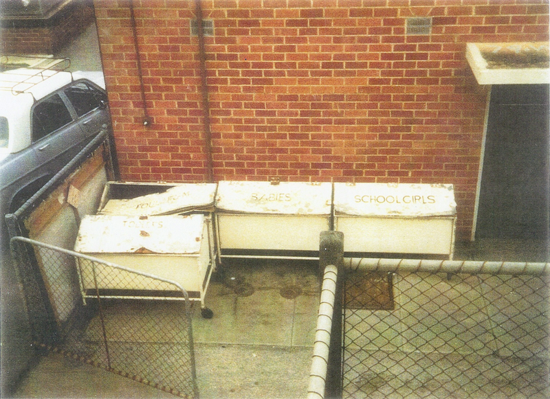 Description: This image shows the old laundry bins from Seaforth Home, Somerton Park.