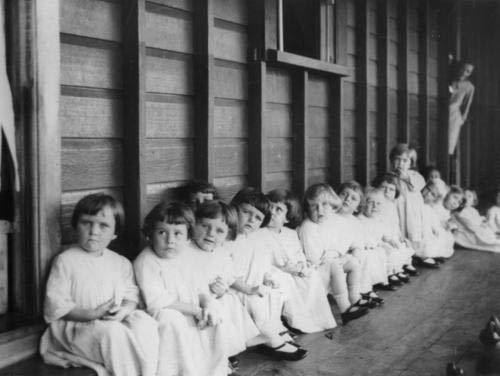 Description: This description was supplied with the photograph and included on the library website: Groups of children from Nudgee Orphanage were immunised against Diphtheria. They totalled 600 and there were no ill effects. As a result of the favourable report, immunisation against Diphtheria was established in Queensland.