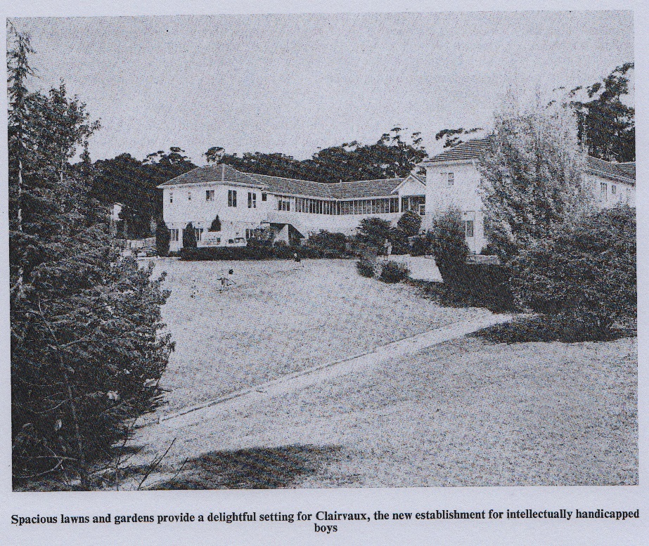 Spacious lawns and gardens provide a delightful setting for Clairvaux, the new establishment for intellectually handicapped boys [original caption]