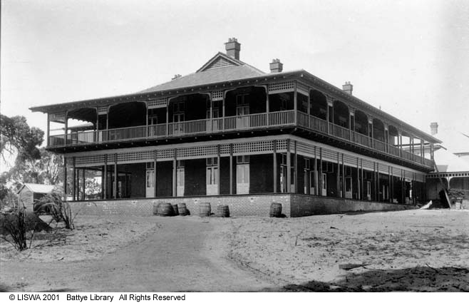 Description: This is a digitised copy of a photoprint and is part of the ‘Shapcott collection of images’ held at the State Library of Western Australia. The image shows the fromt of the hospital.