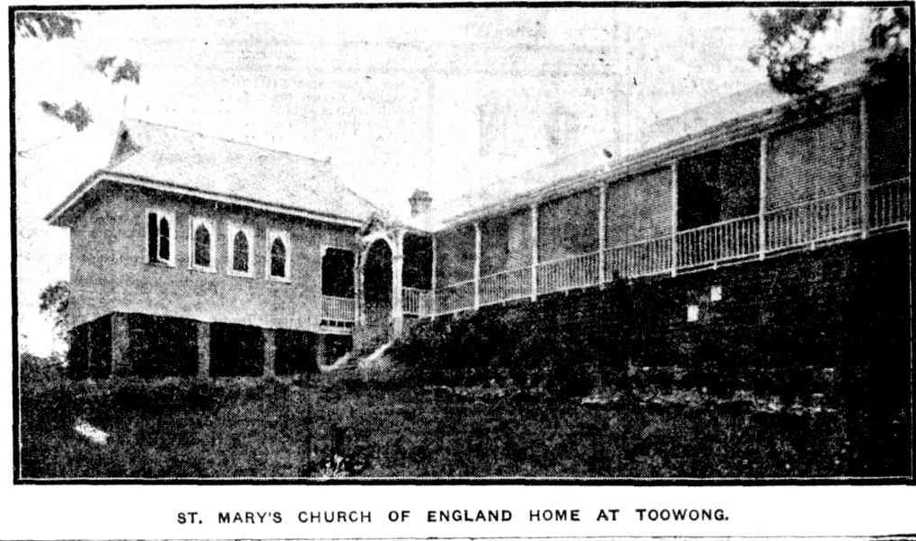Description: This is a copy of a photograph of St Mary’s Church of England Home at Toowong that was published in the Brisbane Telegraph in 1924.