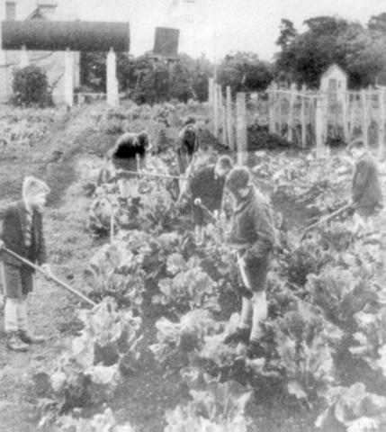 Description: B/W Photo 10x15cm; Shows Boys in the Garden at St. Nicholas’ Home. Daily Life