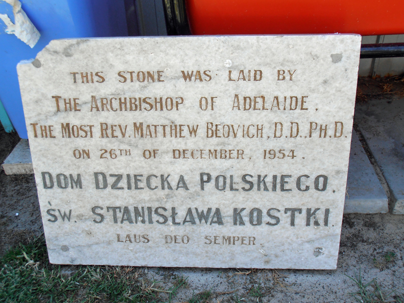 Description: This a photograph of the Foundation Stone from St Stanislaus House. The stone was rescued from the demolition site by local resident