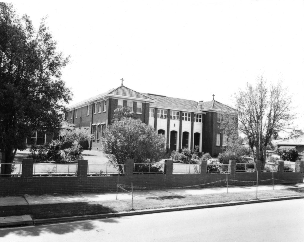 Description: This is a digital copy of a photograph of St Vincent de Paul’s Children’s Home. It is published in the book Holding on to hope (2004) with the following caption: ‘The double-story, red brick building, constructed on an elevated site close to the beach in 1938, originally functioned as a convent and holiday home. It became the administrative centre for St Vincent de Paul’s Children’s Home after it relocated to Black Rock in 1966’.