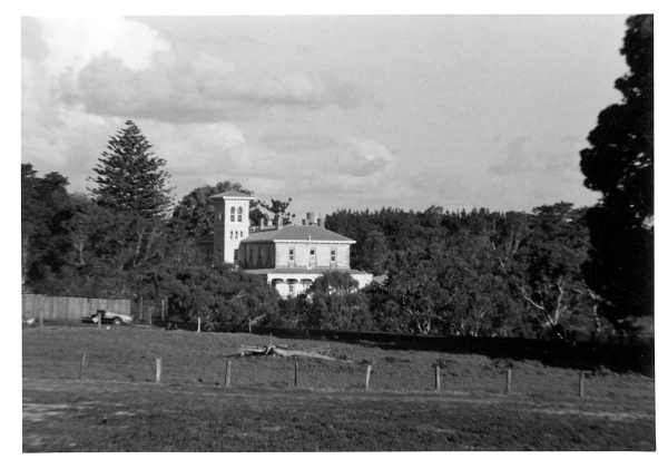 Description: This image shows Straun Farm School. The library description states: Exterior views of the double storey farm school with square tower, return veranda, quoin stonework and arched entrance portico.