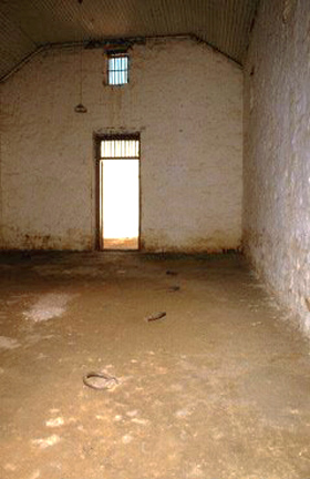 Description: This image shows the inside of the gaol. The description given about the building states: The oldest stone building in Alice Springs. It has associations with many aspects of central Australian history. The size and layout of the cells reflect the attitudes of authorities to Indigenous Australians as prisoners. [edited]