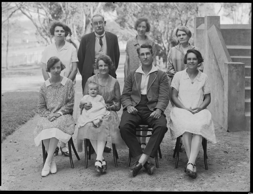 Description: This is a digitised copy of a negative and is part of the Illustrations Ltd collection held at the State Library of Western Australia. The image shows the eight teachers from the WA School for Deaf Children and a baby.