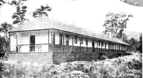 Description: This is an image of the Salvation Army Bayswater Boys’ Home. It shows a long, narrow single storey building in a bushland setting. This image is one of a set of images of Salvation Army Homes published in the Weekly Times on 31 January 1903.
