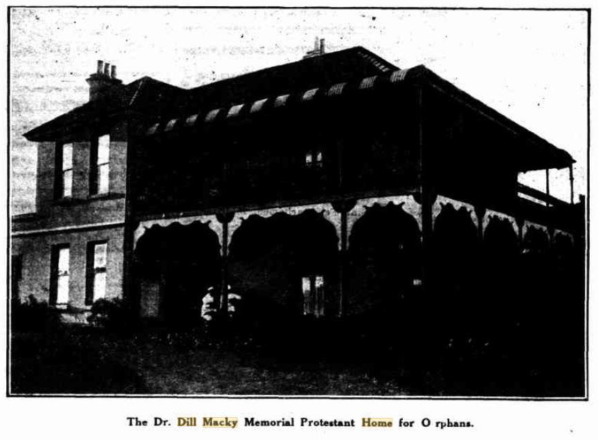 Description: This is an image of the Dr. Dill Macky Memorial Home for Children at Auburn. It shows a large two-storey house with verandahs, and at least two people (possibly staff members in uniform) standing on the lower verandah. It was published in the Watchman on 30 January 1919.