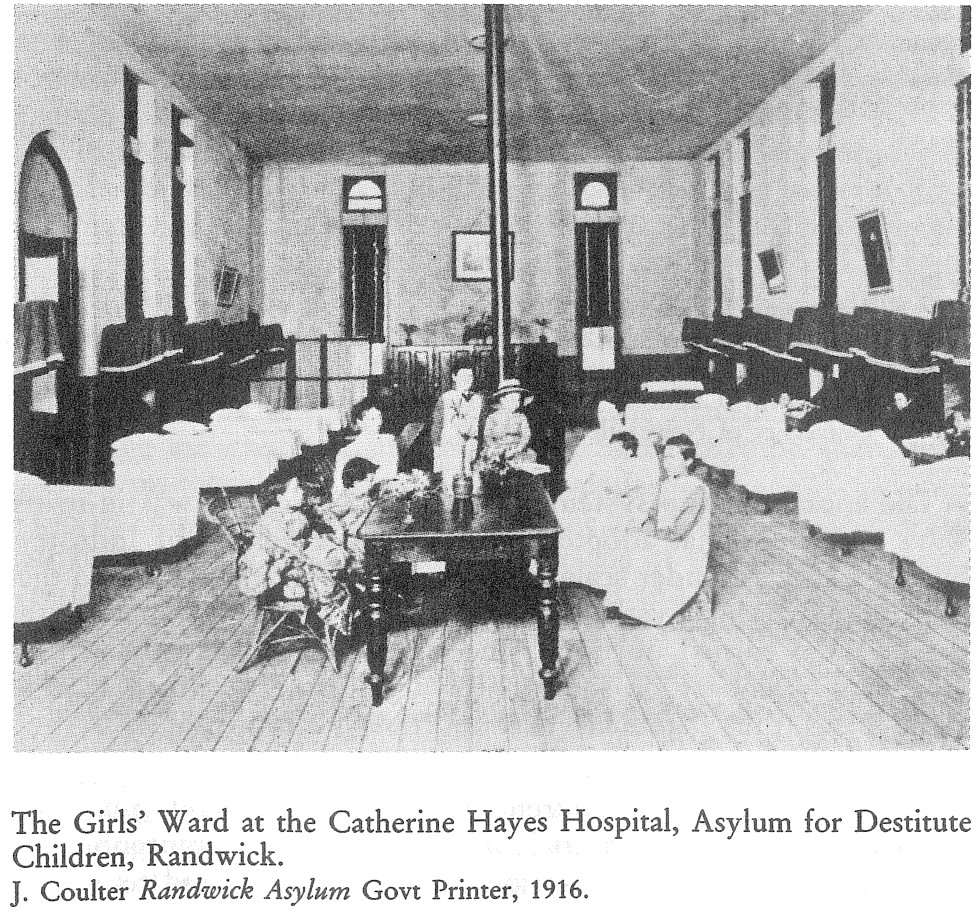 This image was published in Children of the Back Lanes: destitute and neglected children in colonial New South Wales in 1986. The original image is held by the State Archives of New South Wales. This image has been dated as 1916, however as the asylum had closed by this date it is assumed that this image was taken slightly earlier than 1916.