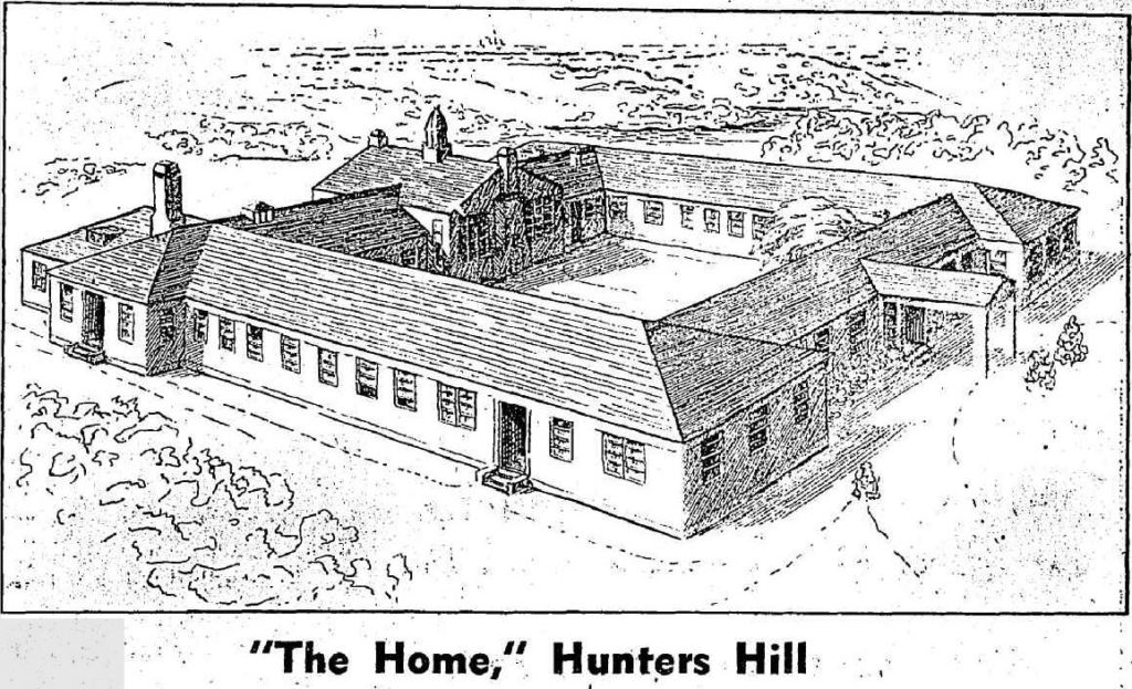 Description: This is a drawing of The Sir Moses Montefiore Jewish Home, which housed the Isabella Lazarus Home for Jewish Children. It shows the home as a large square complex with a central courtyard. It was published with an article about the home in The Hebrew Standard of Australasia on 4 July 1952.