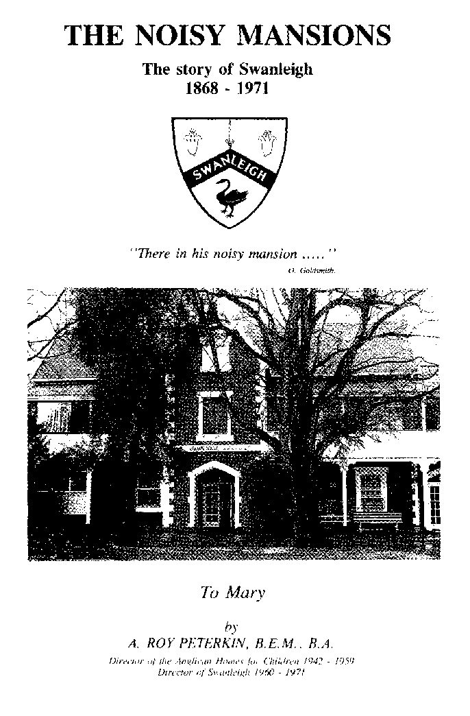 Description: This is a digital copy of The Noisy Mansions, which is a history of the Western Australian Anglican orphanage which became Swan Homes and finally Swanleigh. The Noisy Mansions was written by A. Roy Peterkin, the long-standing Director of the Home.