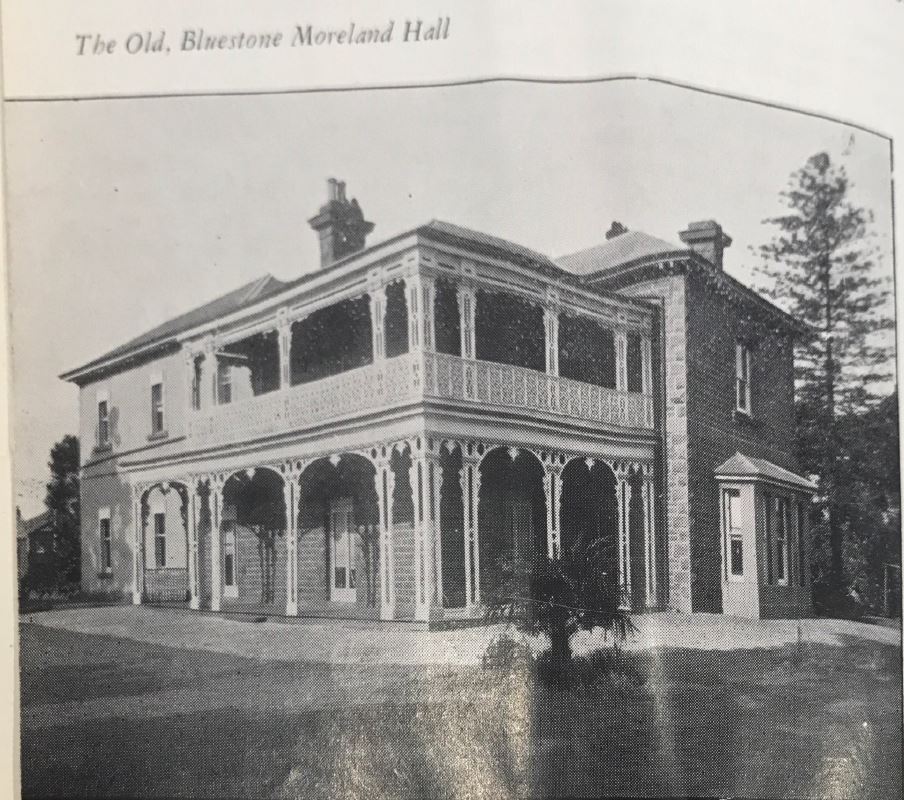 Description: This is an image of Moreland Hall, which was used by the Wesley Central Mission as a reformatory for girls and young women. It shows a large, two-storey, bluestone house with an ornate verandah and a large rear extension. This image was published in The Central Mission Report for 1940. The title was taken from this publication.