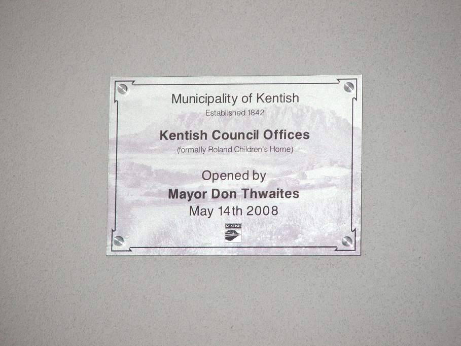 The plaque on the Kentish Council Offices formerly the site of Roland Children's Home.