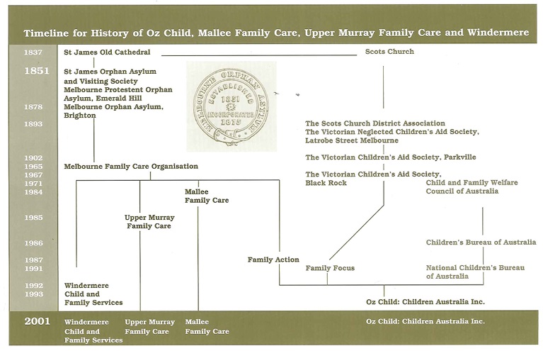 Timeline of History for OzChild, Mallee Family Care, Upper Murray Family Care and Windermere