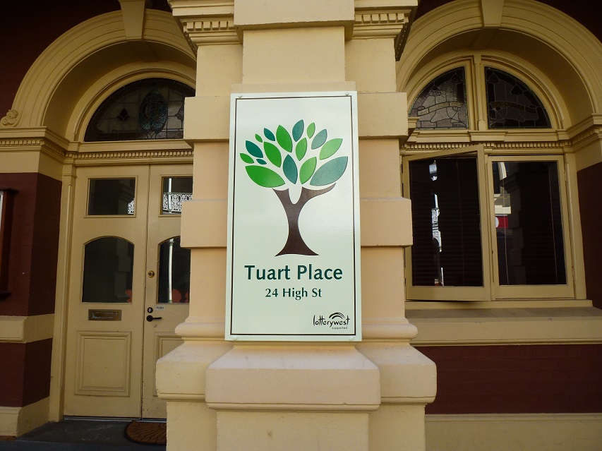 Description: This is a photograph of the front entrance of Tuart Place in Fremantle, Western Australia. Tuart Place is a resource centre for people who have been in out of home care.