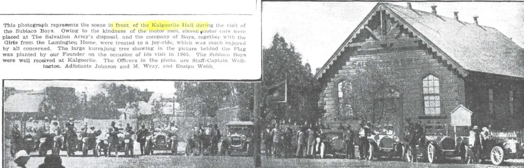 Description: ‘Visit to Kalgoorlie’ is a digital copy of an item held in the Kalgoorlie Photos file at the Salvation Army Heritage Museum WA. The item is a photocopied excerpt from The War Cry dated 15 October 1921. The caption reports on a visit by the ‘Subiaco Boys’ and the presence of ‘Girls from the Lamington Home’. These refer to the Salvation Army Boys’ Home, West Subiaco (Nedlands) and the Salvation Army Girls’ Home, Kalgoorlie (Lamington Heights).