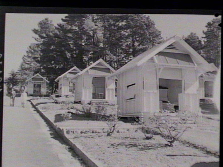 To begin with children were accommodated with the adult patients. The main building at Waterfall had beds for 180 male patients, with open verandahs looking out to sea. Patients in the active phase of TB were isolated in fibro chalets, about the size of a garden shed. While additional accommodation was built, demand meant that the Sanatorium was often overcrowded, staff were overworked, and extra beds were placed on verandahs.