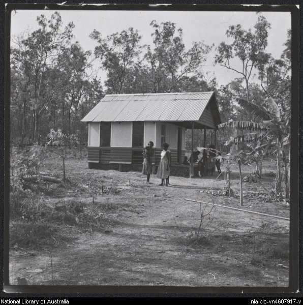 Women and children outside a house on Elcho Island, Northern Territory, 1958?